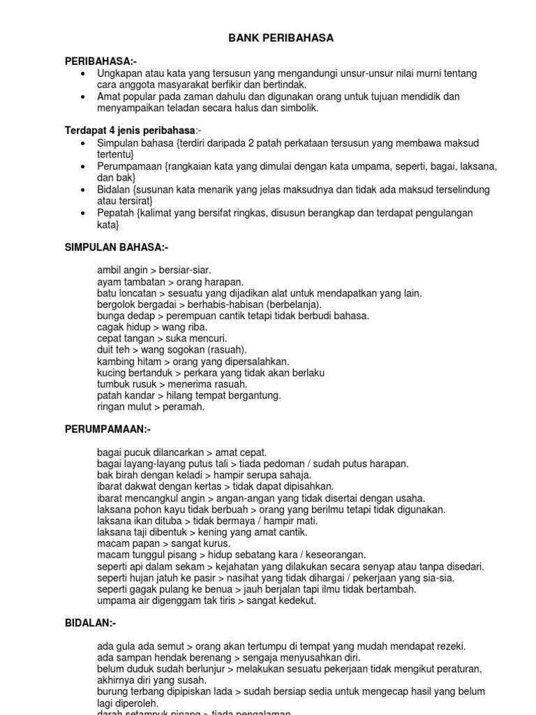 Murid-murid dapat mencari maksud peribahasa dan makna ayat tertentu termasuk simpulan bahasa perumpamaan. Kumpulan Arti Peribahasa lainnya DI SINI 2. Tryout SKD CPNS 2021 4000 soal DI SINI 3.